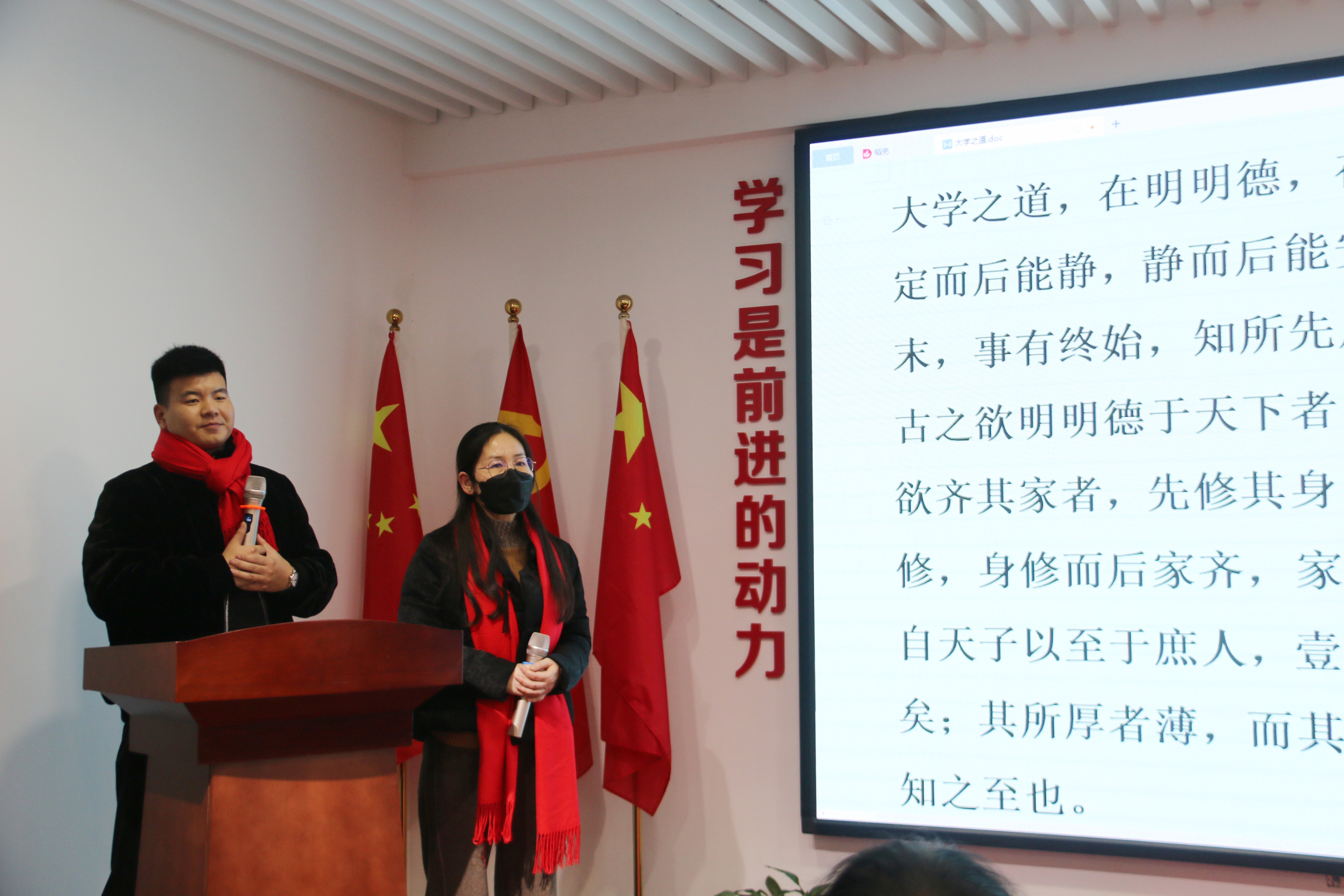 由德邻集团财务总监杨晓娜和市场经理赵源方带领大家朗读《大学之道》