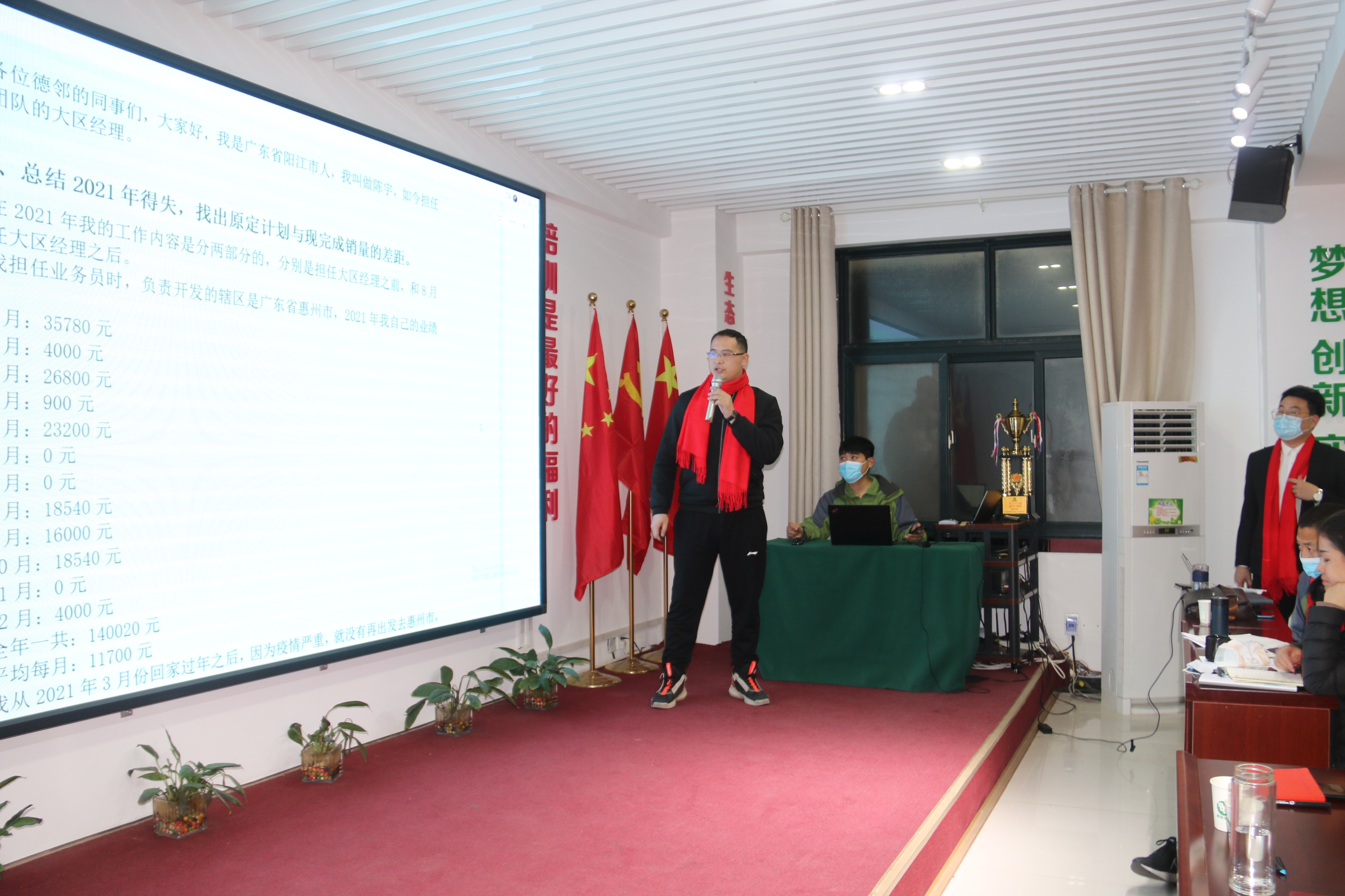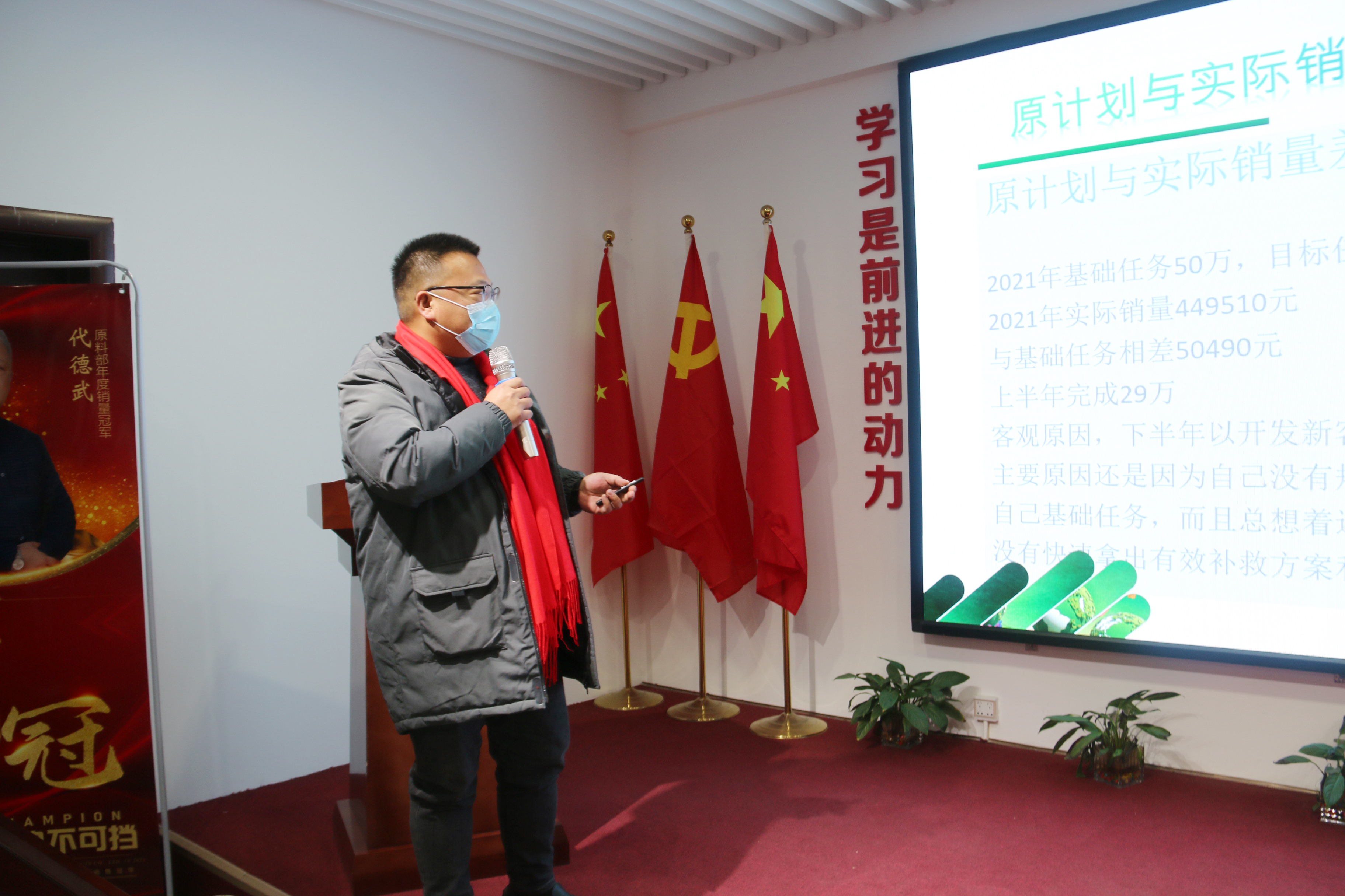 市场部汇报的最后由市场部总经理朱总发表演讲,总结2021年的战绩并制定2022年目标计划。